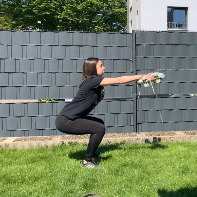 Wir sind nun schon in der 6. Woche angekommen. Langsam geht es etwas härter zu: Workout mit Flaschen und Rollschuhen als Gewichte - Power!